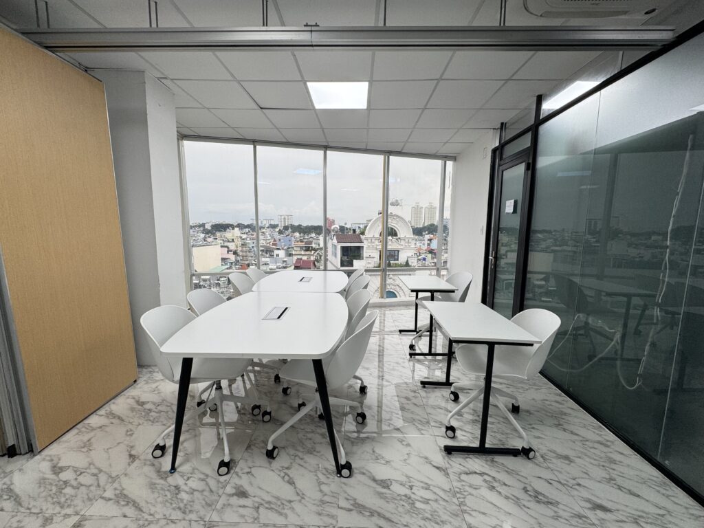 Đáp ứng mọi nhu cầu đào tạo, workshop với hệ thống phòng linh hoạt từ 15-30+ người, được trang bị sẵn sàng máy chiếu, bảng viết và âm thanh hiện đại.